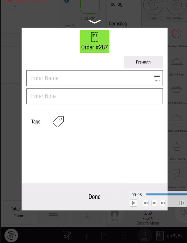 If you open a new Tab by tapping the “Quick Tab” option, Tabit PAD goes to the Order Screen immediately.