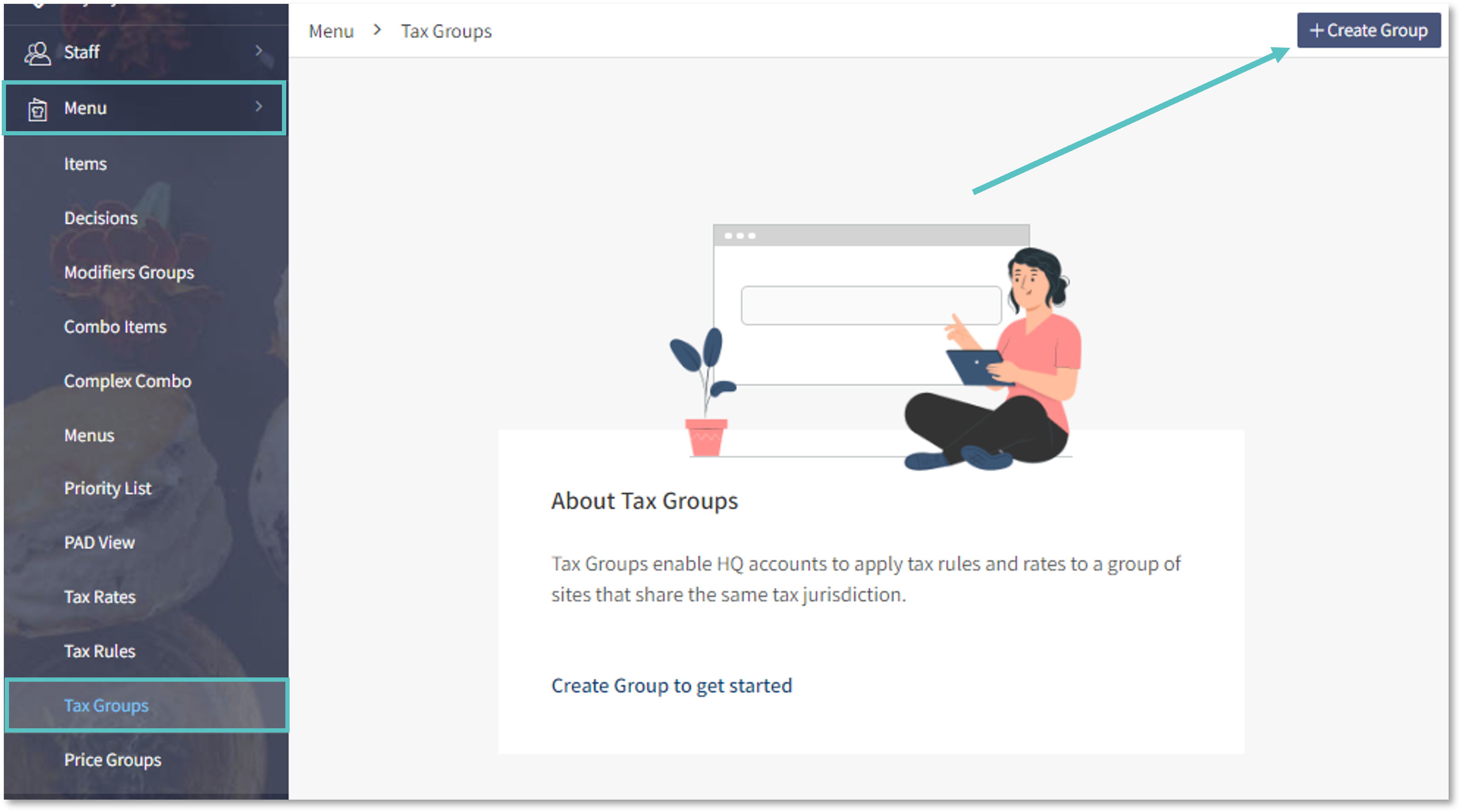 Go to Menu > Tax Groups > select + Create Group in the top right of the screen