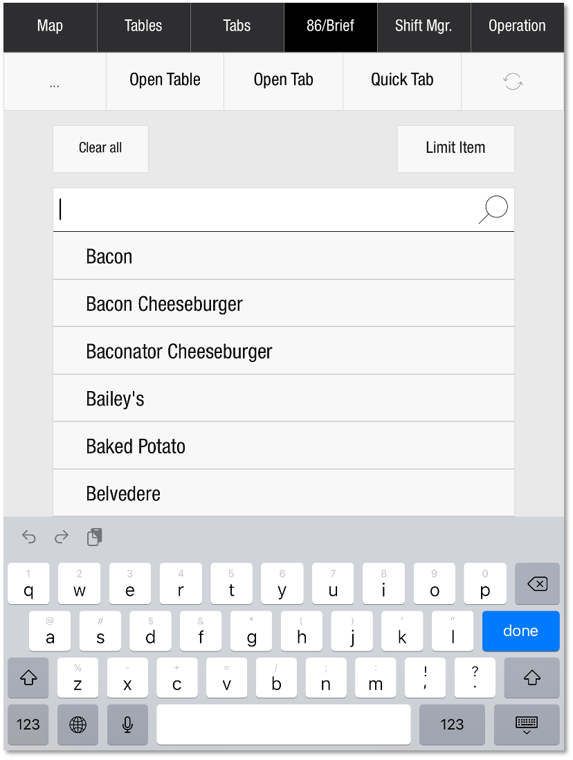 Once the Item is selected, it will automatically be set to 0. To limit the Item instead of 86'ing it, enter the number of Items remaining