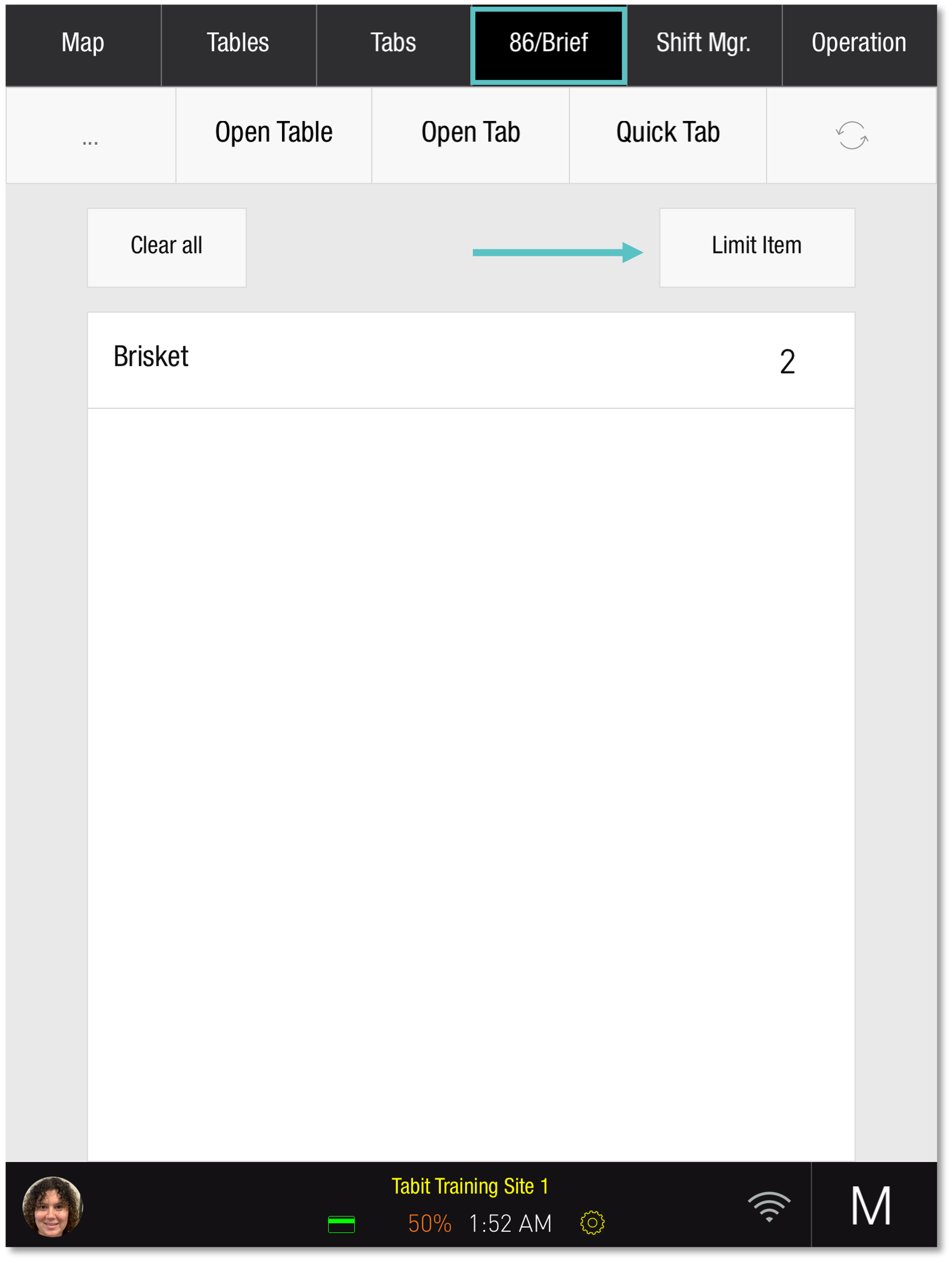 Tap on the 86/Brief tab located at the top of the PAD and then tap on Limit Item