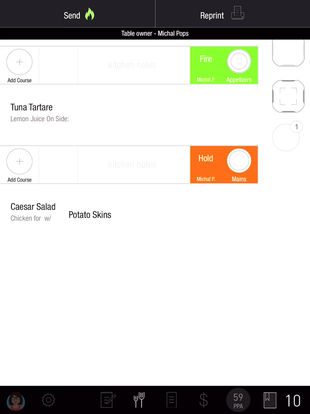 Adding a Course is especially useful when we want to course orders containing only items from the same course type. For example: An order of Nachos as an appetizer and Wings for the main course. Both items are categorized as appetizers in the system so it doesn't automatically open a “Mains” Course and we need to add it for proper coursing.