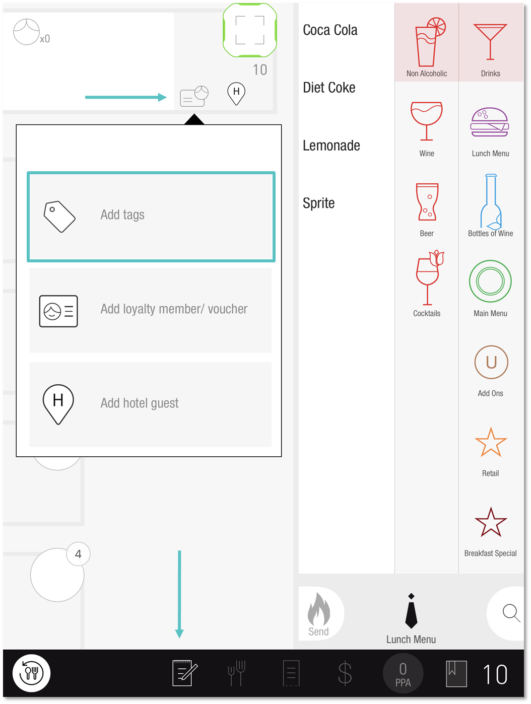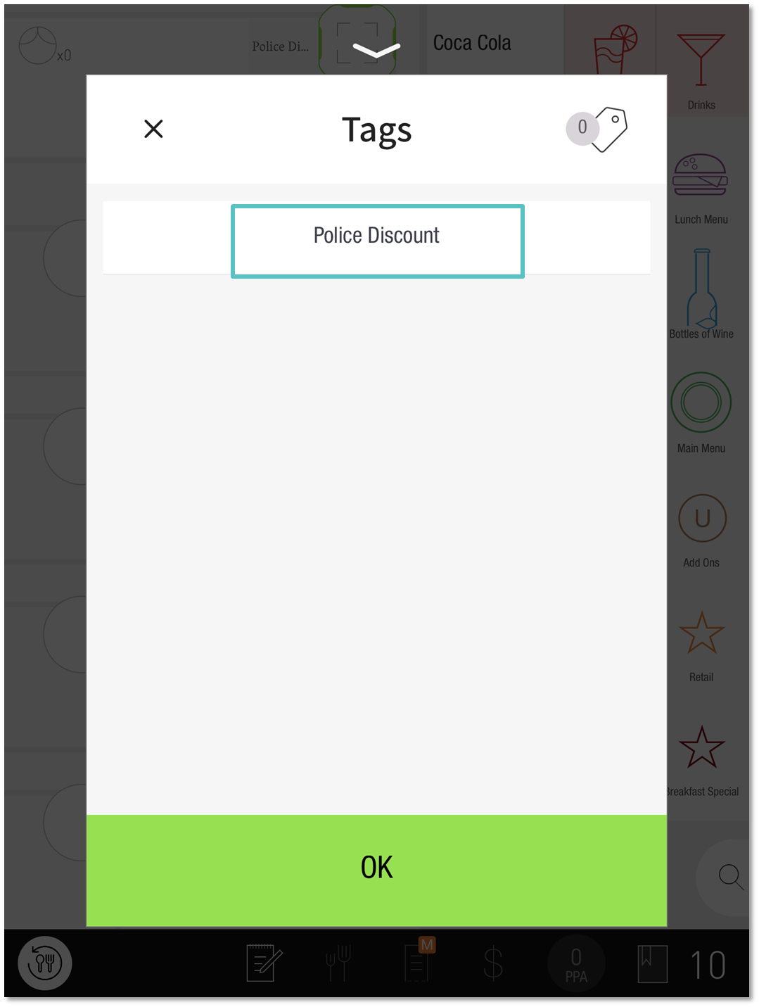 From the Order screen, tap on the Card Icon and then select Add Tags
