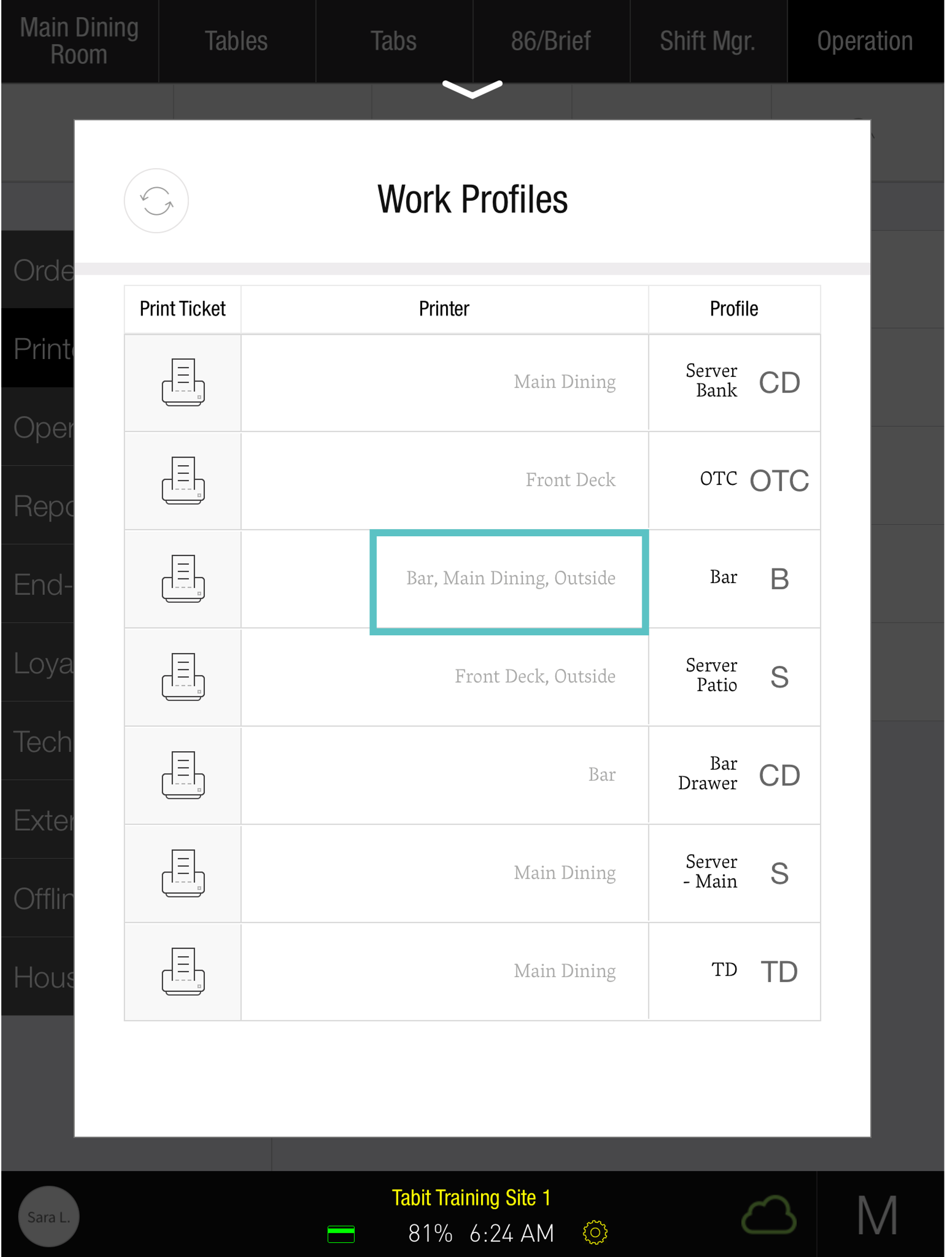 Only Managers have access to printers from Tabit PAD