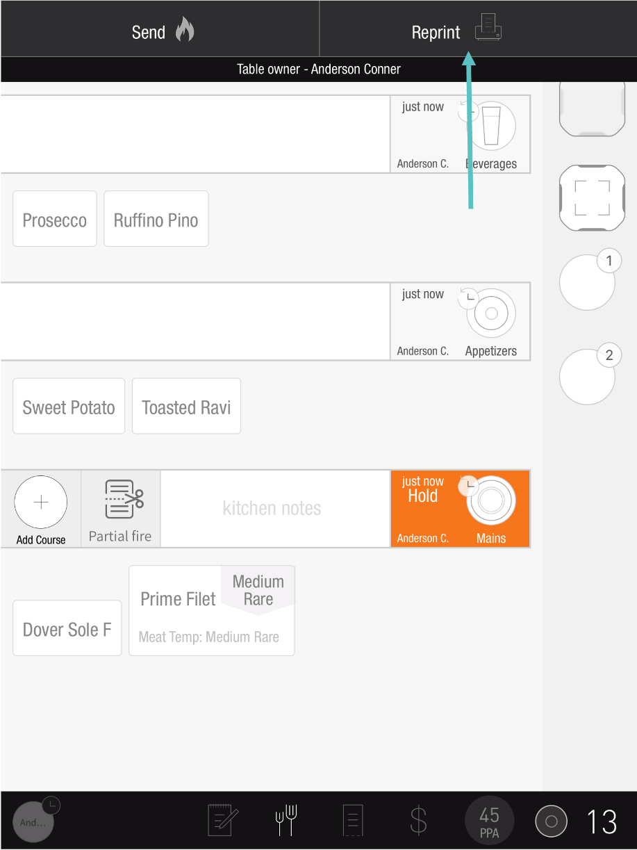 Follow the steps below to learn how to reprint a Kitchen Ticket: