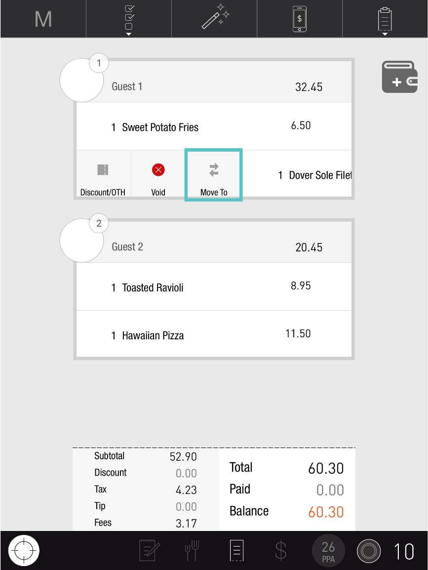 From here you have three options: transferring the Item to another Table, Tab, or Guest