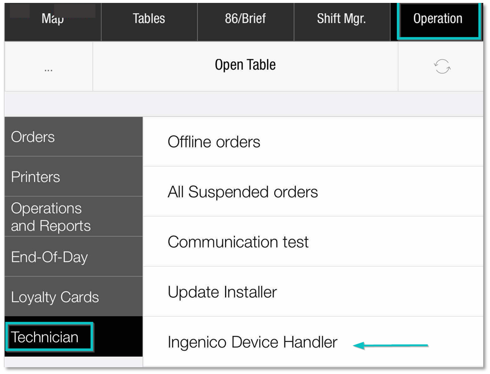 Under a Manager login, go to Operation > Technician > Ingenico Device Handler