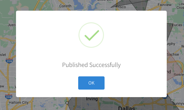 Delivery regions can be hidden which removes them from the map. This allows you to redraw them without requiring you to delete or draw over existing regions. Hidden regions will still appear in the delivery region list and the PAD, but not on the map