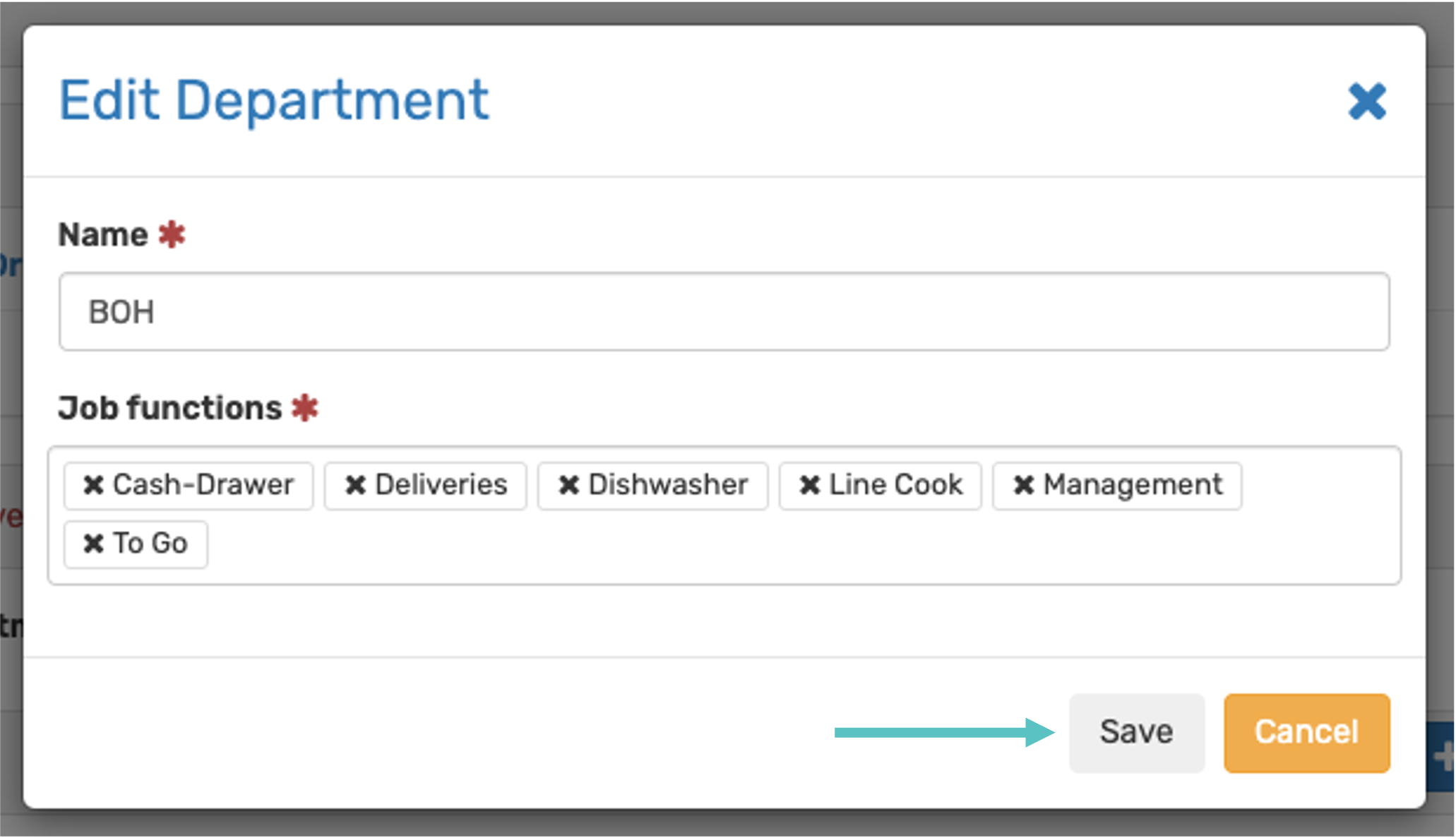 Enter a name for the department and select the relevant job functions. Then select Save