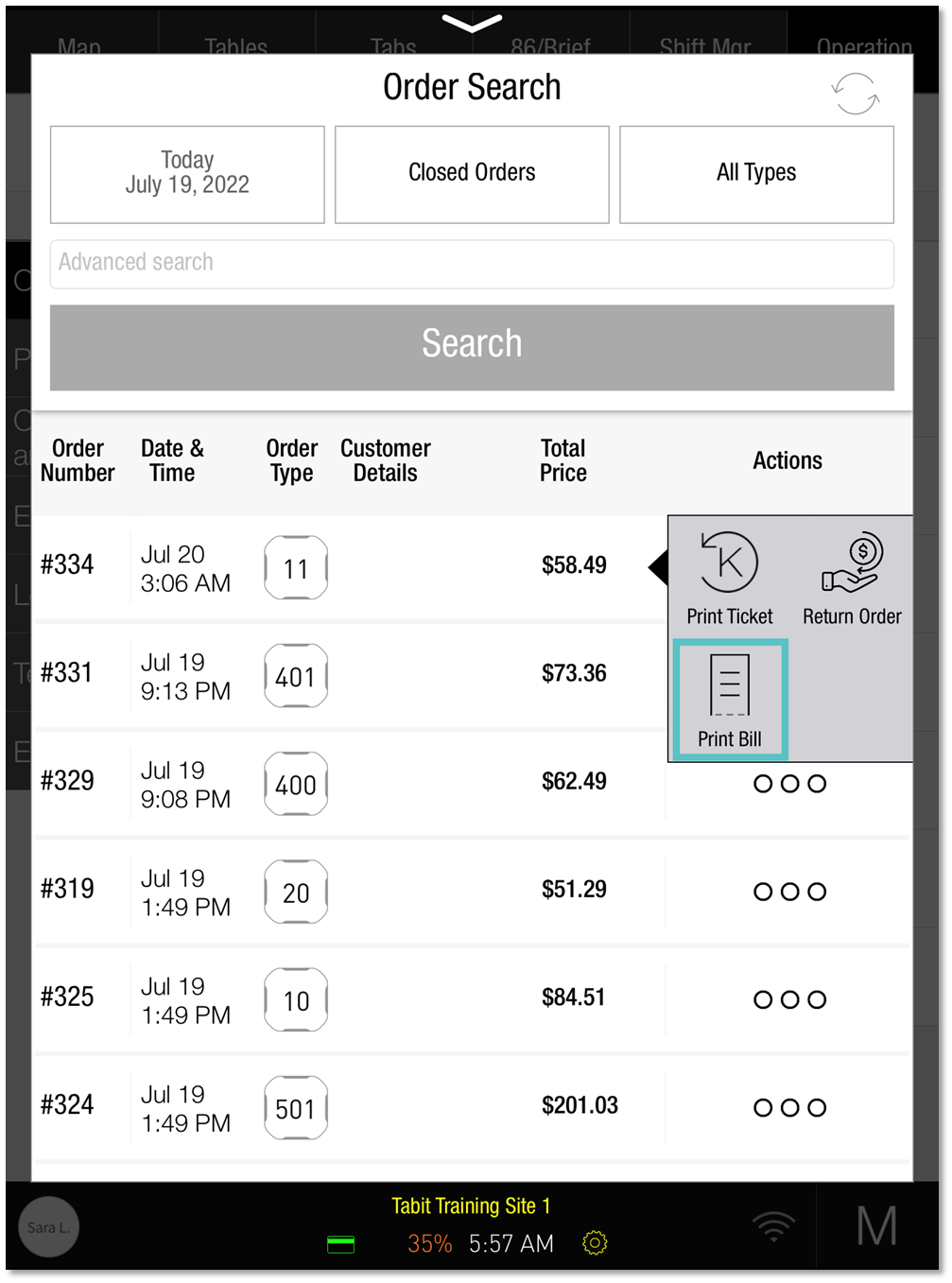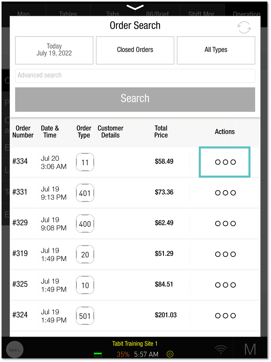 Search for the Order by Date or Type, or use the Advanced Search to find it using other Order details