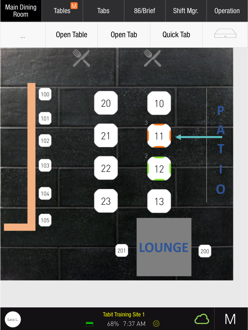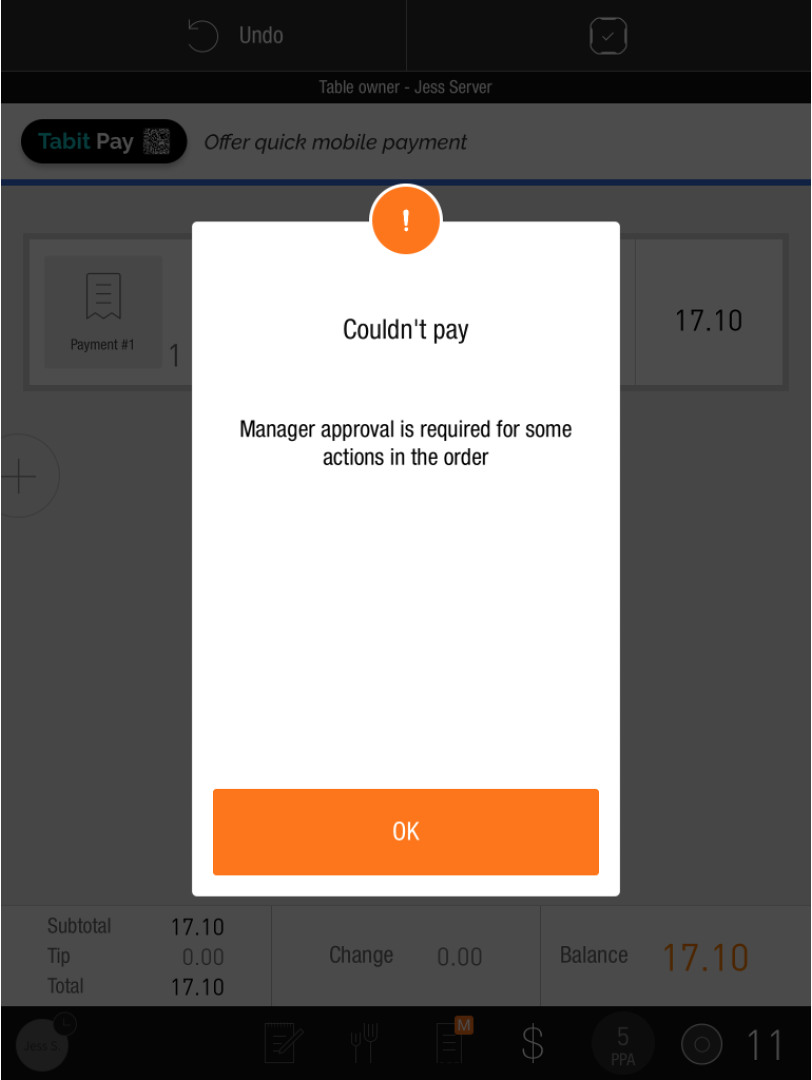 The Table will also turn orange on the Map, indicating that a Manager approval is required