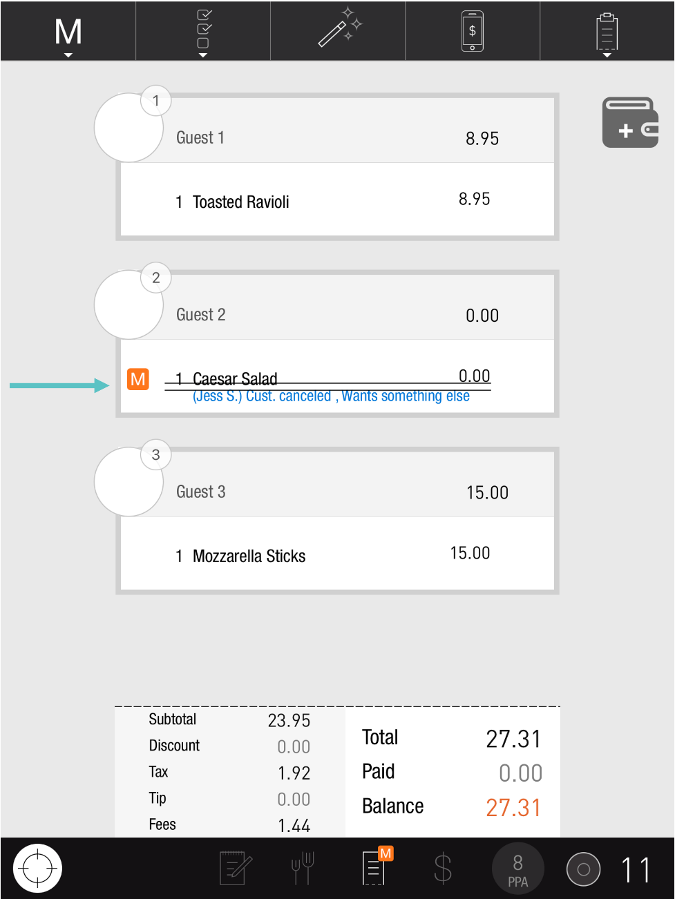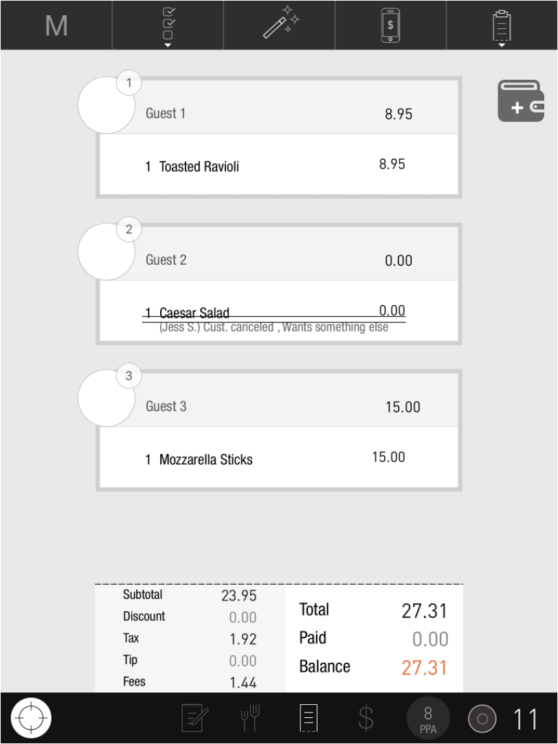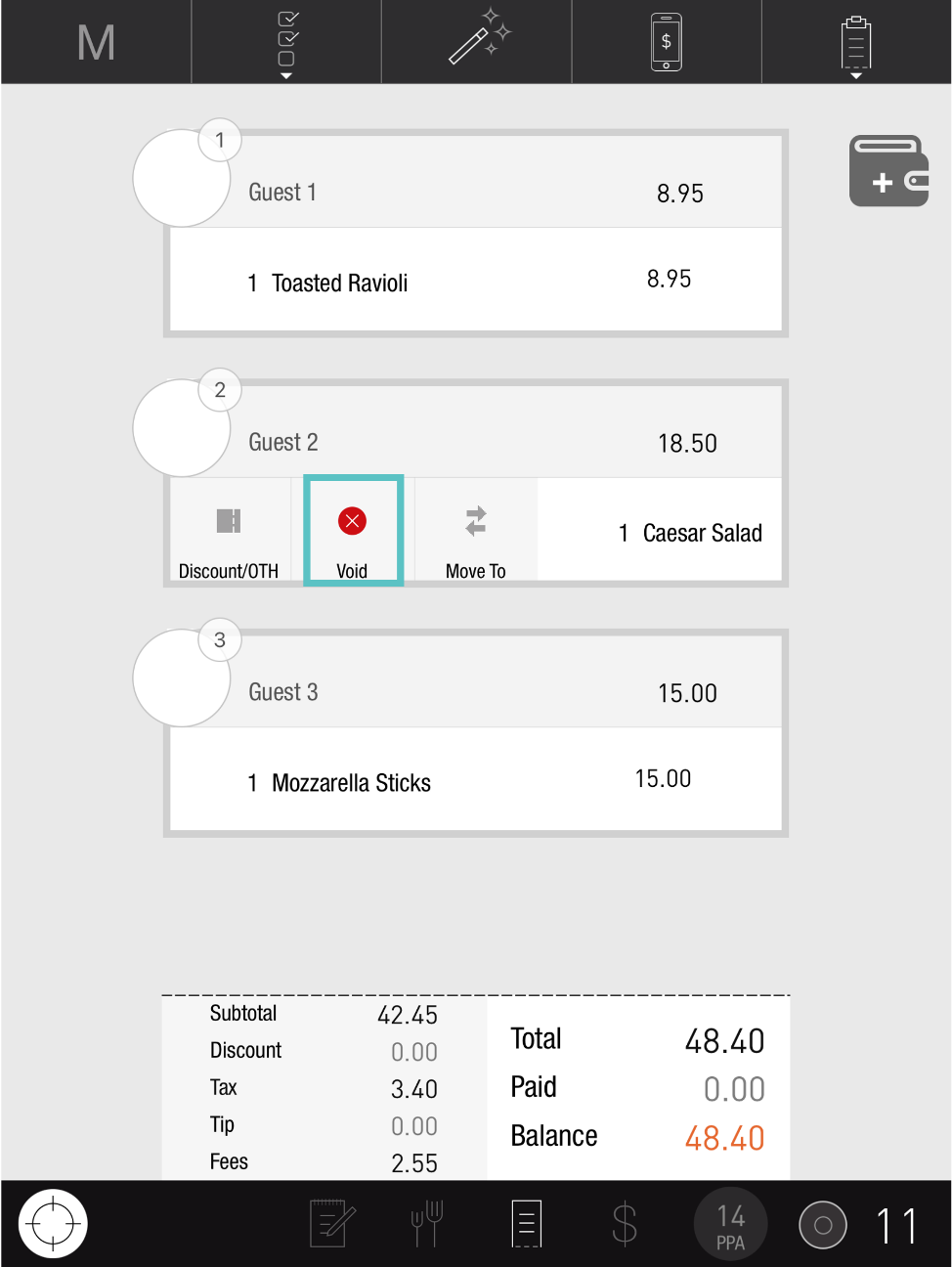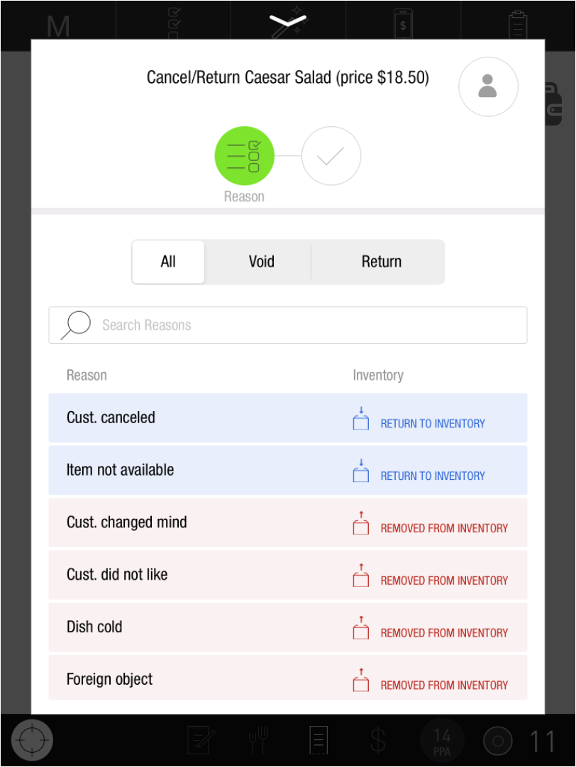 Once the Manager has approved the Void, the Reason will turn grey and the Item will be removed from the bill