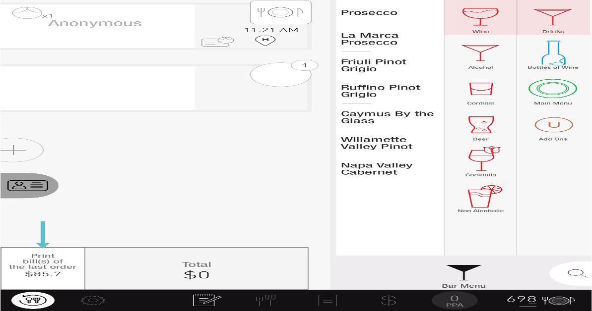 To reprint the most recent OTC receipt, tap on the button in the bottom left-hand corner of the screen, as seen below: